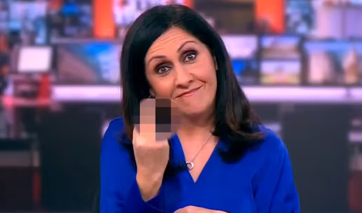LONDON: Seorang penyampai berita saluran BBC memohon maaf selepas tidak sengaja menunjukkan jari tengah ketika mula bersiaran di televisyen.