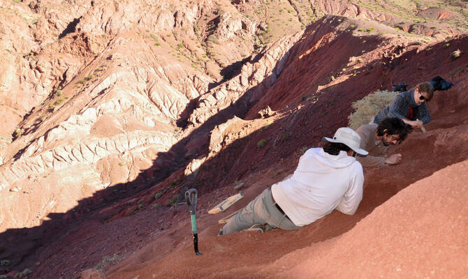 Penemuan itu dibuat oleh pasukan ahli paleontologi yang diketuai oleh institut berkenaan di kawasan pergunungan barat laut Argentina pada ketinggian kira-kira 3,000 meter dari paras laut.