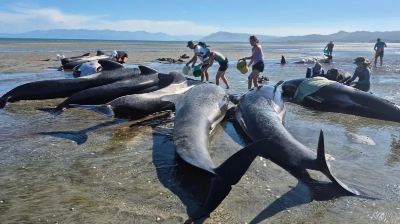 WELLINGTON: Enam ekor ikan paus dilaporkan mati selepas puluhan spesies itu terdampar di sebuah pantai terpencil di Pulau Selatan New Zealand, manakala para sukarelawan kini berusaha menyelamatkan 15 ekor lagi yang masih hidup dengan mengembalikannya ke laut. Sebanyak 55 ekor paus jenis pilot whale terdampar di Farewell Spit pada Khamis. Walaupun kebanyakannya berjaya kembali ke laut, 15 ekor dilaporkan terdampar semula di sepanjang kira-kira satu kilometer di pesisir pantai. Rakaman…
