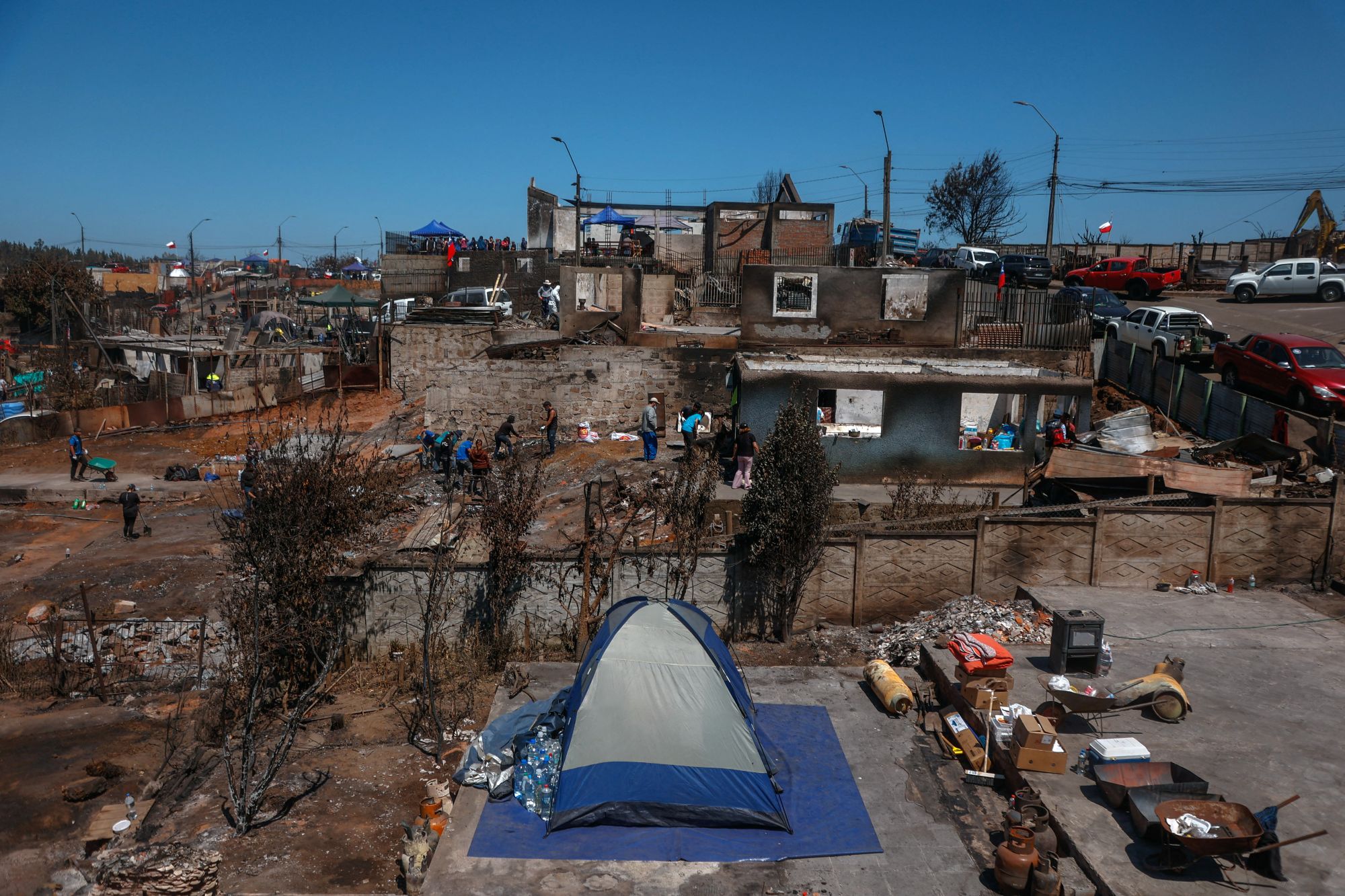 Bantuan asas seperti tandas mudah alih dan generator elektrik juga mula dihantar ke kawasan terjejas seperti Lirquen, di mana ramai keluarga terpaksa berkemah di celah-celah runtuhan kediaman mereka sementara menunggu proses pemulihan.