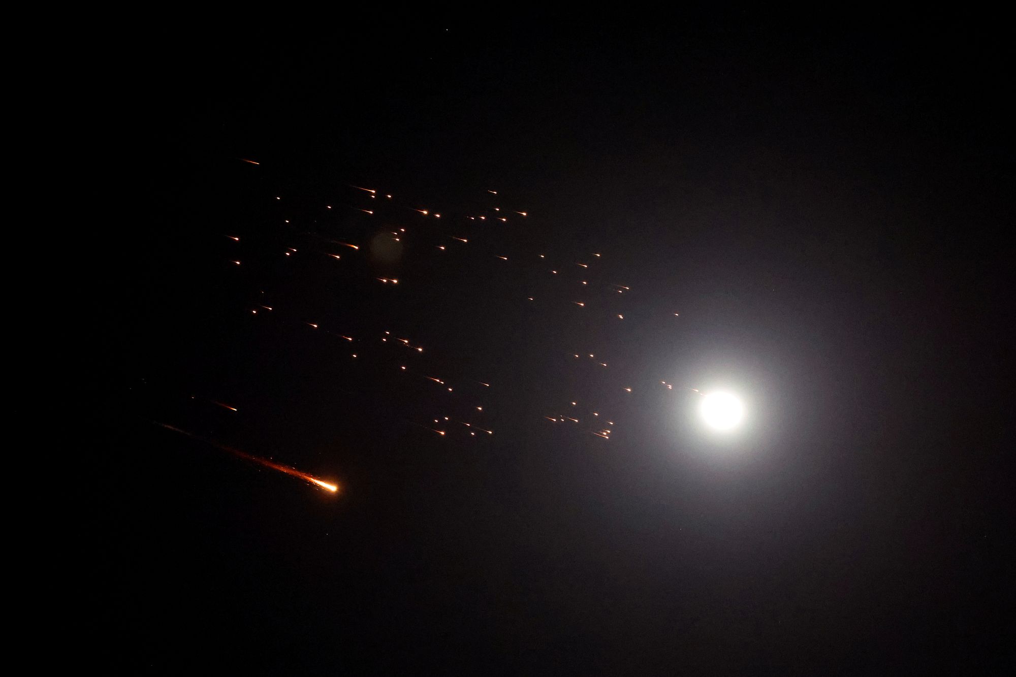 Jejak roket turut menerangi langit di Netanya, sebuah bandar di utara Tel Aviv di pesisir Laut Mediterranean.