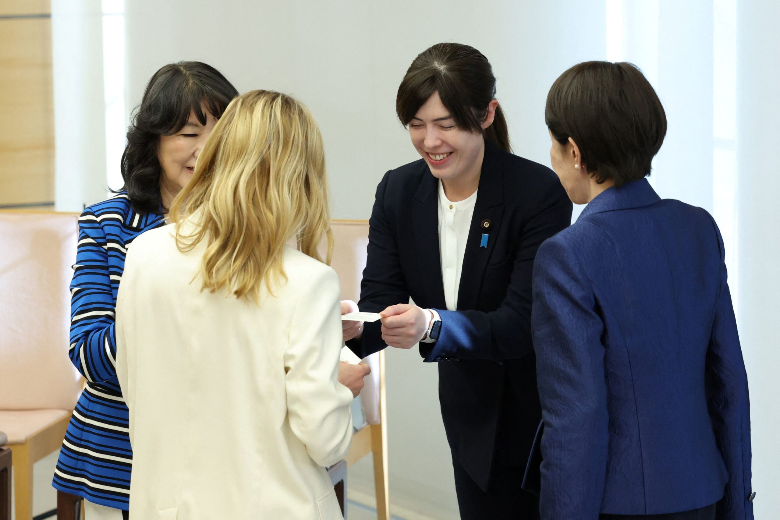 Menteri Keselamatan Ekonomi Jepun, Kimi Onoda itu keluar dari sebuah teksi dan berlari masuk ke mesyuarat Kabinet pada pagi Jumaat di Tokyo.
