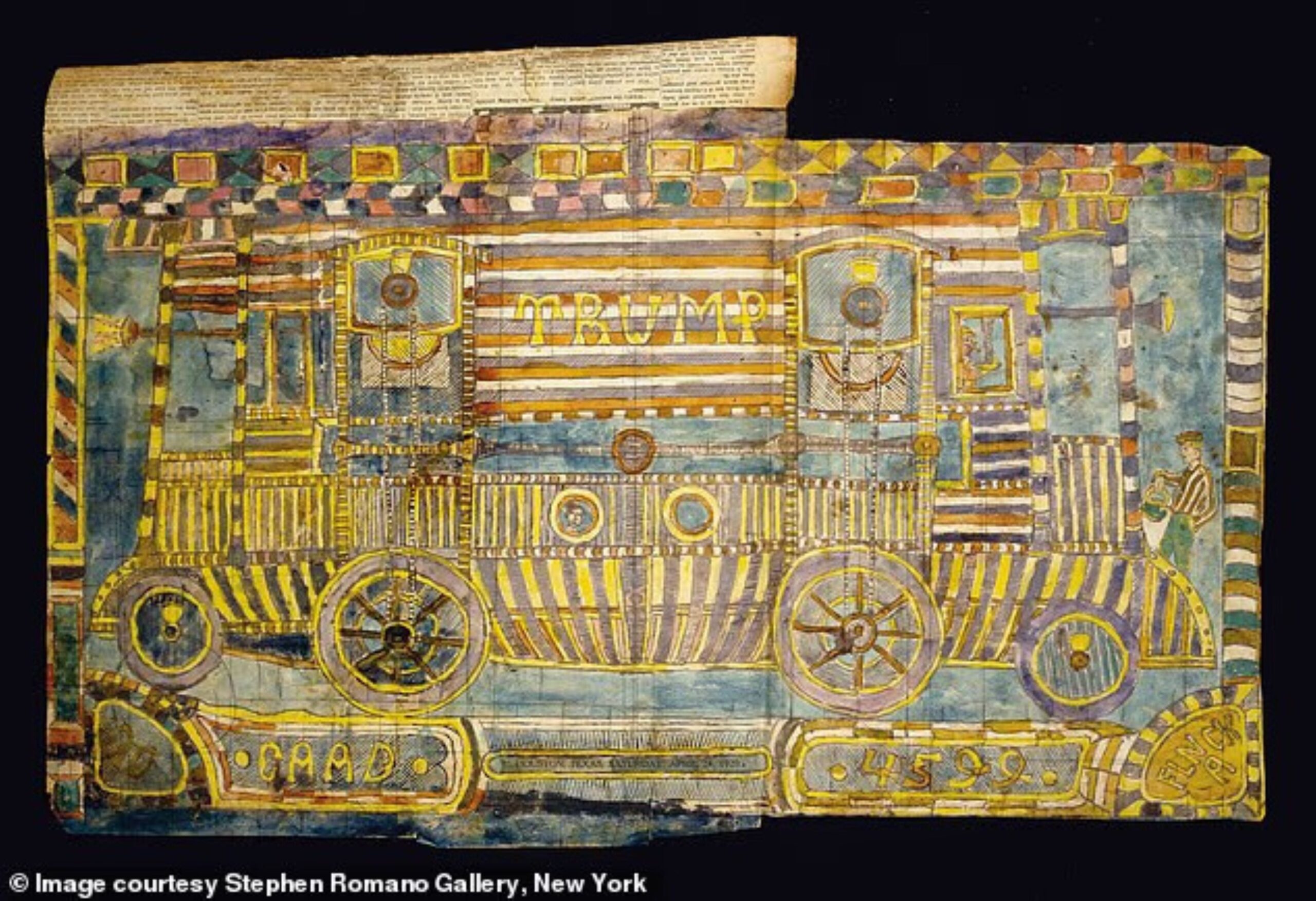 Selain itu, satu lagi lakaran Dellschau menunjukkan seorang manusia berambut emas sedang mengemudi mesin yang dilabel dengan nombor 45. Nombor itu dikaitkan dengan Trump sebagai presiden ke-45