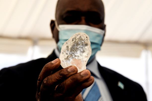 Berlian yang ditemukan pada 1 Jun itu dipersembahkan kepada Presiden Botswana, Mokgweetsi Masisi di sini.
