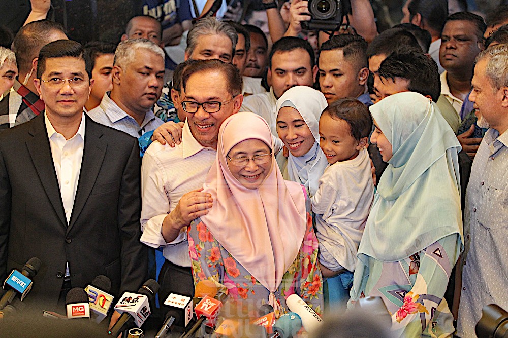 KUALA LUMPUR 16 Mei – Penasihat PKR, Datuk Seri Anwar Ibrahim menjunjung kasih yang tidak terhingga kepada Yang di-Pertuan Agong, Sultan Muhammad V kerana berkenan membuat keputusan mengampunkan beliau tanpa sebarang syarat. Anwar yang juga bekas Timbalan Perdana Menteri menyifatkan pengampunan tersebut cukup bermakna seiring dengan slogan ‘Dari Penjara ke Istana’ selain membolehkan beliau dapat berucap secara bebas sepenuhnya. “Saya bersama dengan Datin Seri Dr. Wan Azizah Ismail (Timbalan Perdana…