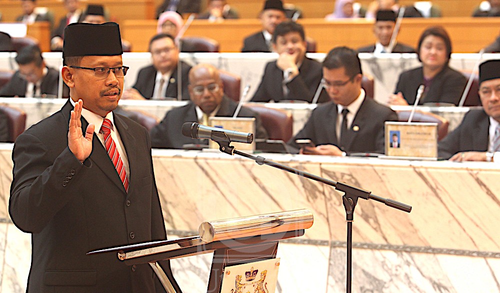 ISKANDAR PUTERI 28 Jun – Seramai 56 Ahli Dewan Undangan Negeri (ADUN) Johor mengangkat sumpah jawatan di Bangunan Sultan Ismail di Kota Iskandar, di sini hari ini. Mereka mengangkat sumpah di hadapan Speaker DUN yang baharu, Suhaizan Kayat dengan didahului Menteri Besar, Datuk Osman Sapian. Selepas Osman, 10 ahli Exco pula mengangkat sumpah diikuti ADUN Gambir, Tan Sri Muhyiddin Yassin yang juga Ahli Parlimen Pagoh dan ADUN Simpang Jeram, Salahuddin…