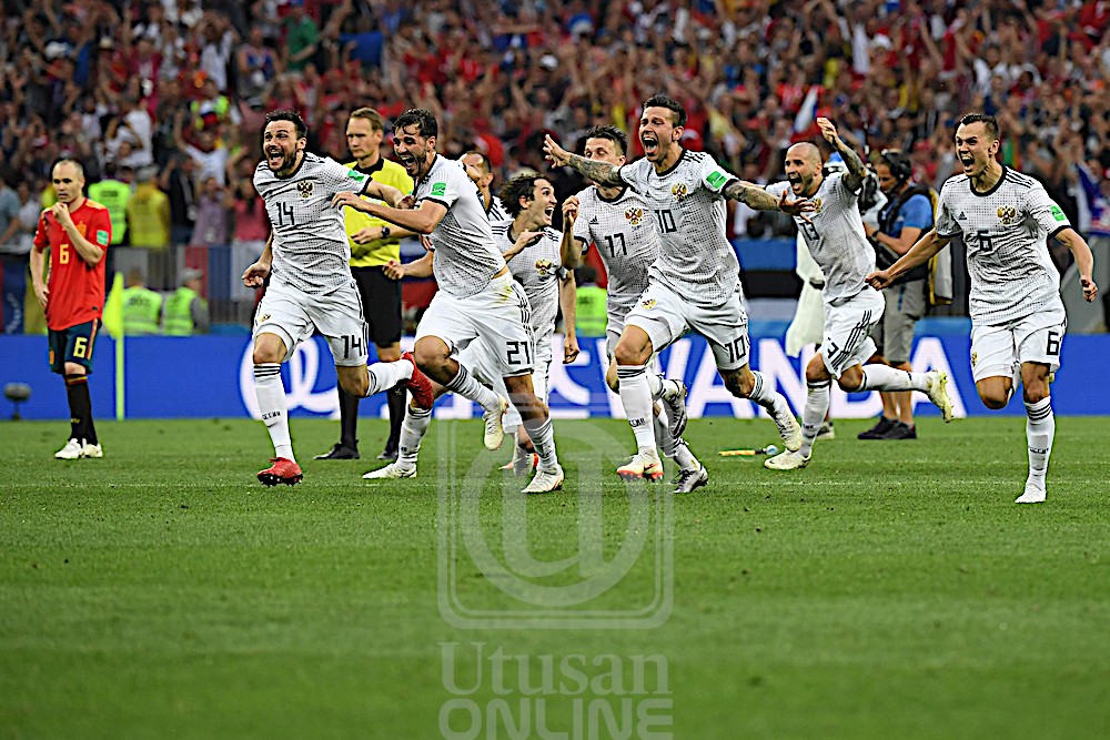 MOSCOW 2 Julai – Juara 2010 Sepanyol tersingkir daripada Piala Dunia selepas tewas 4-3 menerusi penentuan sepakan penalti kepada tuan rumah Rusia dalam perlawanan pusingan kedua di Stadium Luzhniki, di sini sebentar tadi. Kedua-dua pasukan terikat 1-1 selepas tamat 90 minit permainan sebenar dengan Sepanyol memperoleh jaringan hasil gol sendiri pemain Rusia, Sergei Ignashevich pada minit ke-12 sebelum tuan rumah menyamakan kedudukan menerusi sepakan penalti yang disempurnakan penyerangnya, Artyom Dzyuba…