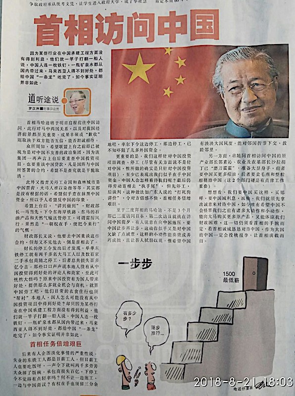 AKHBAR Nanyang Siang Pau bertarikh 16 Ogos 2018 menyiarkan artikel mengkritik kerajaan Pakatan Harapan (PH) kerana mengambil tindakan melulu untuk membatalkan kebanyakan projek melibatkan kontraktor dan pelabur dari China. KERATAN Nanyang Siang Pau 16 Ogos 2018. Artikel bertajuk Perdana Menteri lawat China yang ditulis oleh Loh Han Chew disiarkan dalam ruangan Pendapat halaman C2. Semua orang sedia maklum bahawa selepas PH mengambil alih pemerintahan Malaysia, dasar yang akan diamalkan adalah…