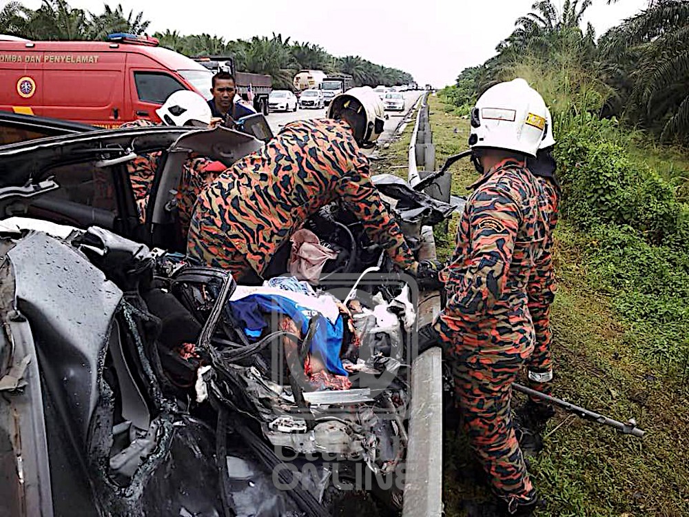 SEGAMAT 8 Sept. – Empat beranak terbunuh manakala seorang lagi cedera apabila kenderaan pelbagai guna (MPV) dinaiki dilanggar sebuah treler di Kilometer 176, Jalan Johor Bahru-Seremban dekat Kampung Melayu Raya di sini hari ini. Mangsa yang maut adalah pemandu Honda Stream, Nur Faizlin Jamaludin@Samsudin, 37; suaminya, Nizam Daud, 51, dan dua anak mereka, Nur Naqia, 7, dan Muhammad Niaz, 2. Seorang lagi anak mereka yang turut berada dalam kenderaan itu,…