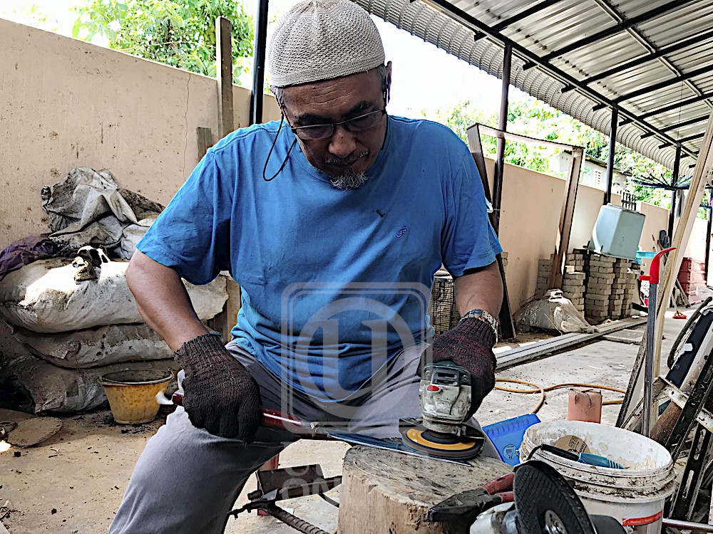 GUA MUSANG 12 Sept. – Minat mendalam terhadap senjata tradisional sejak di bangku sekolah mendorong seorang bekas kakitangan Lembaga Kemajuan Kelantan Selatan (Kesedar) menceburi bidang pembuatan golok dan sarung berukir. Wan Mohd. Aris Wan Abdullah, 60, melakukan kerja tersebut di bengkelnya yang terletak di rumahnya di Kampung Tanah Putih di sini. Sepanjang hampir 20 tahun pembabitannya dalam bidang menempa dan membuat sarung golok, dia telah menerima tempahan yang tidak putus-putus…