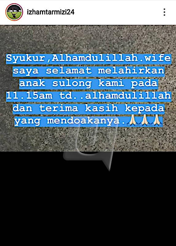 KUALA LUMPUR 28 Sept. – Pelakon Mia Ahmad selamat melahirkan bayi sulung lelaki pada pukul 11.15 pagi tadi di sebuah pusat perubatan di Johor Bahru. Suami Mia Ahmad, Izham Tarmizi berkongsi kegembiraan mendapat anak sulung. Berita gembira itu telah dikongsikan oleh suaminya, Izham Tarmizi di laman Instagram @izhamtarmizi24, dua jam yang lalu. “Syukur Alhamdullillah, isteri saya selamat melahirkan anak sulung kami tadi. “Alhamdulillah dan terima kasih kepada yang mendoakan. Saya…
