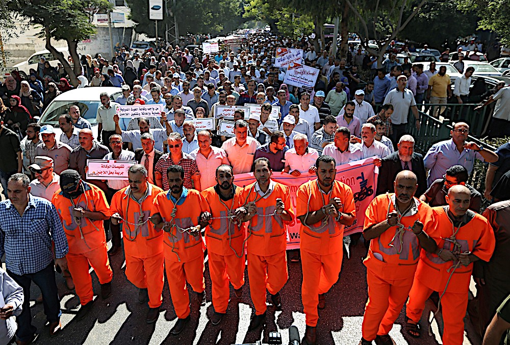 GAZA CITY 24 Sept. – Kumpulan pekerja di Agensi Kerja dan Bantuan Untuk Pelarian Palestin Pertubuhan Bangsa-Bangsa Bersatu (UNRWA) mengadakan mogok di Semenanjung Gaza hari ini sebagai ptotes terhadap kehilangan kerja dan potongan bantuan oleh Amerika Syarikat (AS). Mogok itu juga menyaksikan lebih 250 buah sekolah kelolaan UNRWA di Gaza termasuk pusat-pusat perubatan dan pusat edaran makanan ditutup. Terdapat kira-kira 13,000 pekerja UNRWA di Gaza. – AFP