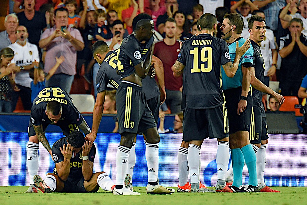 VALENCIA 20 Sept. – Penampilan sulung Cristiano Ronaldo bersama Juventus di pentas Liga Juara-Juara berakhir dengan tangisan apabila dia dibuang padang ketika menentang Valencia, sebentar tadi. Pemain Terbaik Dunia itu dilayangkan kad merah oleh pengadil dari Jerman, Felix Brych seawal minit ke-29 selepas berbalah dengan pertahanan Valencia, Jeison Murillo. Keputusan itu dilihat terlalu keras selepas Ronaldo yang bersaing untuk merebut bola dalam kotak penalti hanya melakukan sedikit sentuhan terhadap Murillo,…