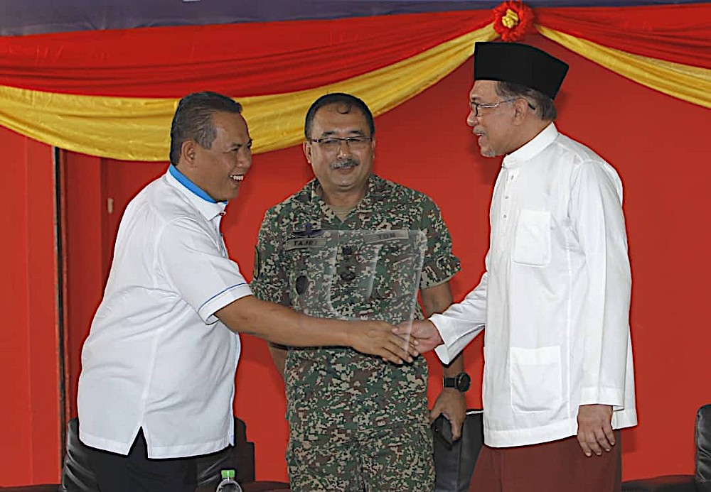 PORT DICKSON 5 Okt. – Kehadiran calon Pakatan Harapan (PH), Datuk Seri Anwar Ibrahim ke Pusat Latihan Asas Tentera Darat (Pusasda) di sini pagi tadi bukanlah untuk berkempen bagi menghadapi Pilihan Raya Kecil (PRK) Parlimen Port Dickson. Menteri Besar Negeri Sembilan, Aminuddin Harun berkata, Anwar hadir hanya selepas beliau bersetuju menerima pelawaannya untuk ke kem tersebut. “Kehadiran Anwar dengan saya hari ini adalah selepas saya bersarapan dengan beliau dan kemudiannya…
