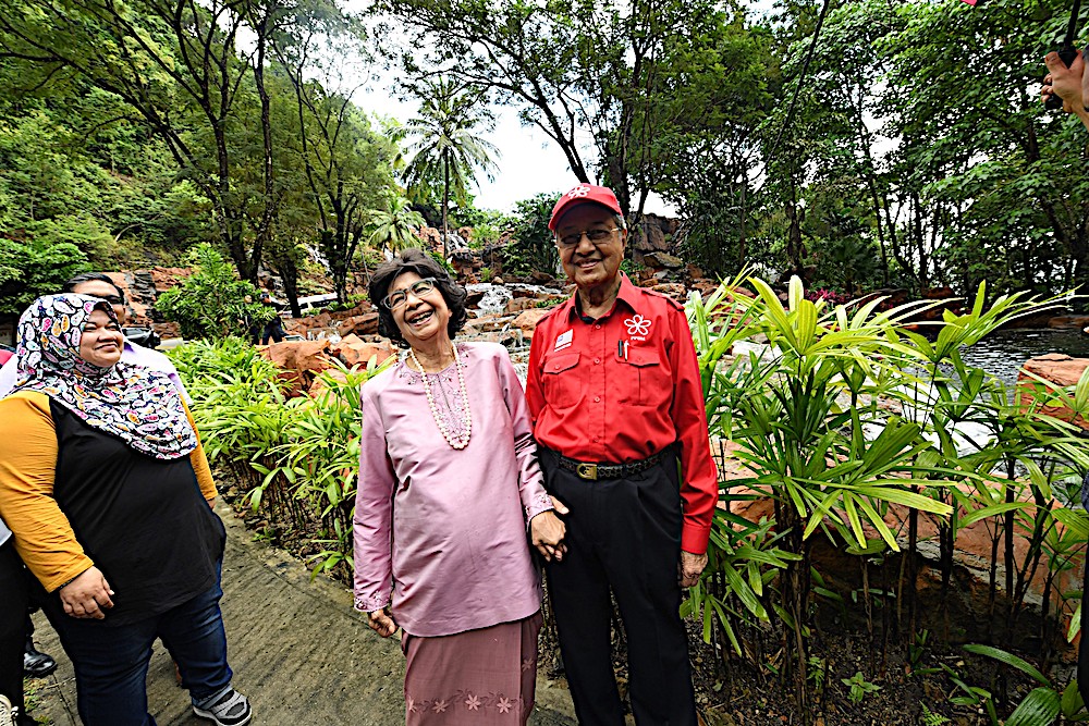 LANGKAWI 20 Okt.- Perdana Menteri Tun Dr Mahathir Mohamad hari ini meninjau keindahan Air Terjun Langkawi yang diilhamkannya dan dibina pada 2003. Dr Mahathir dan isteri Tun Dr Siti Hasmah Mohd Ali berada kira-kira 15 minit menikmati keindahan air terjun tersebut. Kerja-kerja pembinaan air terjun berkenaan dilakukan pada 2003 oleh Gerbang Perdana Sdn Bhd. Pada 2004, air terjun buatan manusia setinggi 66.92 meter itu diiktiraf oleh Malaysia Book of Records…