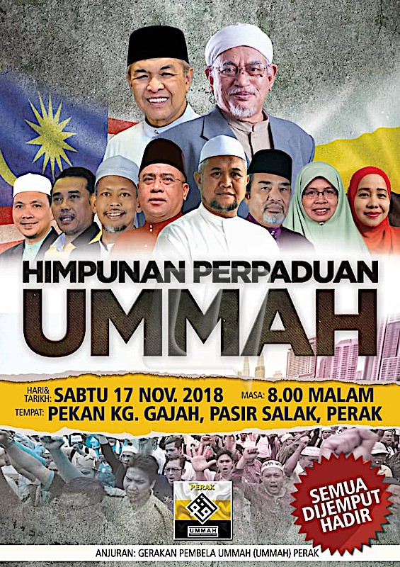 HIMPUNAN Perpaduan Ummah di Pasir Salak pada Sabtu 17 November ini sekali lagi bakal menyaksikan kebangkitan orang Melayu dan umat Islam menentang secara tegas sebarang usaha halus untuk menggugat apa yang sudah termaktub dalam Perlembagaan. Jika sebelum ini Himpunan Melayu Bangkit di tempat sama pada 1 September lalu dikatakan hanya melibatkan UMNO tetapi kali ini barisan kepemimpinan parti itu akan berada sepentas dengan kepemimpinan Pas diketuai oleh Presidennya Datuk…