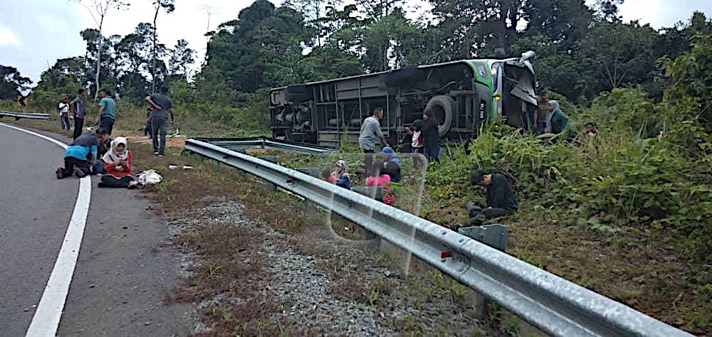 KOTA MARUDU 23 Nov. – Lima termasuk tiga pensyarah maut apabila bas yang membawa kakitangan Politeknik Sandakan serta ahli keluarga mereka terbabas dan terbalik di kawasan Kampung Surun-Surun, Jalan Marak Parak di sini hari ini. Dalam kemalangan pada kira-kira pukul 4.30 petang itu, tiga pensyarah yang maut adalah wanita, dua lagi mangsa ialah suami kepada seorang daripada pensyarah tersebut dan bayi lelaki mereka yang berusia dua tahun. Sebanyak 36 lagi…
