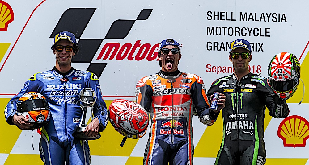 SEPANG 4 Nov. – Kegagalan legenda Itali, Valentino Rossi memanfaatkan peluang menjuarai Grand Prix (GP) Motosikal Malaysia, digunakan sepenuhnya oleh juara dunia 2018, Marc Marquez untuk mengungguli perlumbaan kelas utama MotoGP di Litar Antarabangsa Sepang (SIC), hari ini. Pelumba Repsol Honda itu mencatat masa terpantas 40 minit 32.372 saat (s), meninggalkan pencabar terdekat dari pasukan Suzuki Ecstar, Alex Rins di kedudukan kedua (40:34.270s) dan Johan Zarco dari Monster Yamaha Tech…