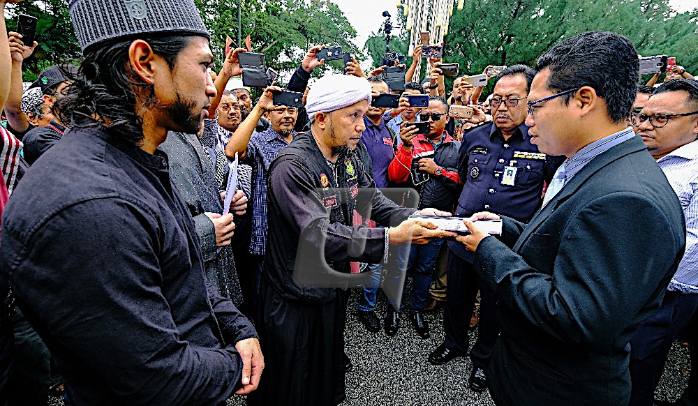 ALOR SETAR 18 Nov. – Biar pun dibasahi hujan, ribuan umat Islam berhimpun di Masjid Sultanah Bahiyah dekat sini hari ini sebelum berarak hampir dua kilometer ke Wisma Darul Aman bagi menyatakan bantahan terhadap pengedaran risalah bible kepada umat Islam, baru-baru ini. Diketuai pengasas Skuad Badar, Azhar Mohamad, aktivis Semboyan 1Malaysia, Yusuf Azmi serta pendakwah bebas, Ahmad Husam Muhammad Baderudin, kalangan peserta himpunan tersebut turut melaungkan penentangan terhadap ratifikasi Konvensyen…