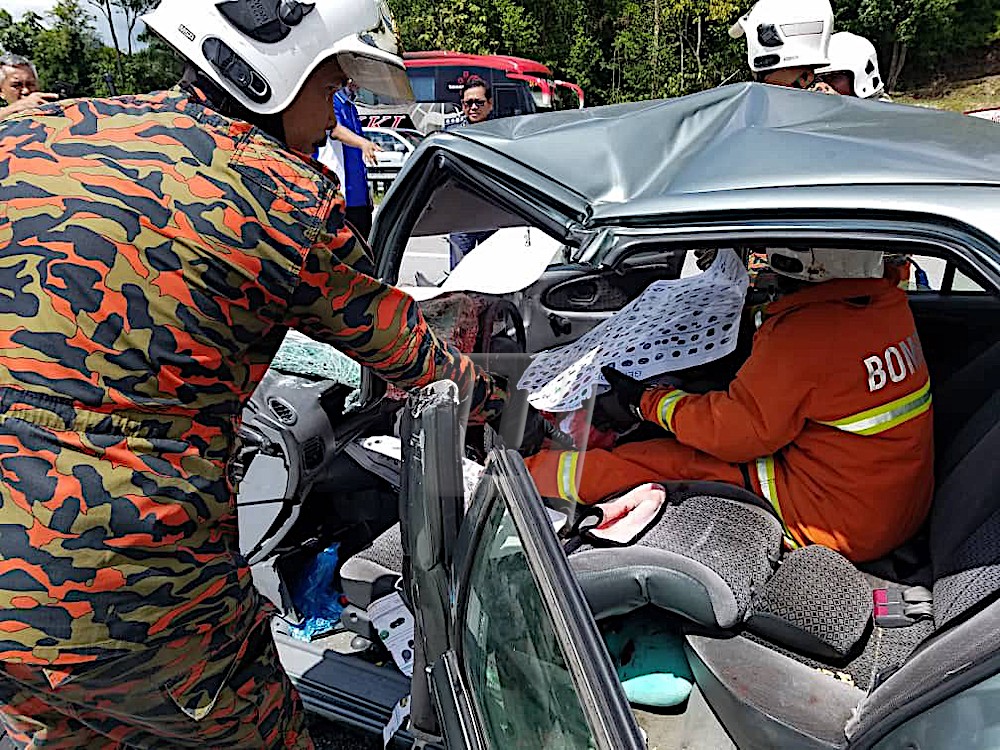 SEREMBAN 4 Dis. – Dua maut dalam kemalangan yang membabitkan empat kenderaan di Kilometer 255.1 Lebuh Raya Utara Selatan arah utara berhampiran Pedas-Linggi dekat Rembau pada pukul 1.54 petang ini. Ketua Polis Daerah Rembau, Deputi Superintenden Anuar Bakri Abdul Salam dalam satu kenyataan berkata, Mohd. Azzarnuddien Abdullah, 41, dan Sharifah Hawa Syed Mokhtar, 55, masing-masing daripada kenderaan berasingan maut. “Siasatan awal mendapati Proton Wira yang dipandu Mohd. Azzarnuddien dalam perjalanan…