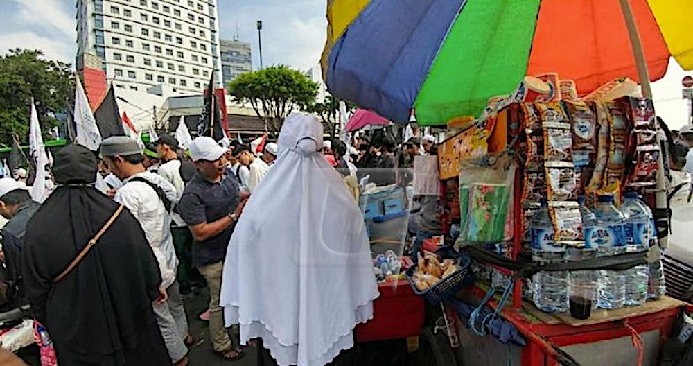 JAKARTA 2 Dis. – Para penjual yang berniaga di sekitar Monumen Nasional (Monas) meraih keuntungan lima kali ganda berbanding biasa susulan perhimpunan Aksi 212 hari ini. “Ya, kira-kira lebih lima kali ganda pendapatan gara-gara acara ini,” kata salah seorang penjual di Tugu Tani, Minggu, Jakarta.