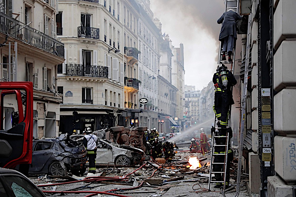 PARIS 12 Jan. – Beberapa orang cedera dalam letupan kuat dipercayai berikutan kebocoran gas di sebuah kedai roti di sini hari ini. Dalam kejadian sekitar pukul 9 pagi waktu tempatan itu, kebakaran berlaku sejurus letupan di kawasan perumahan dan beli-belah, daerah kesembilan berkenaan. Kelihatan serpihan-serpihan kedai itu bertebaran di jalan raya dengan cermin berdekatan pecah. – AFP