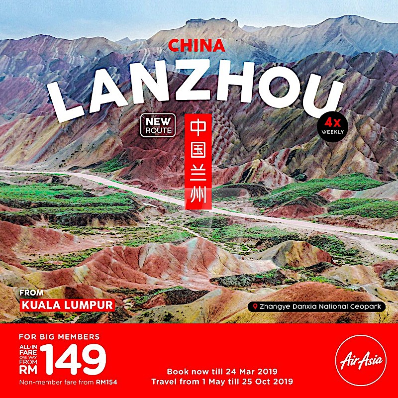 KUALA LUMPUR 8 Mac – AirAsia mengumumkan laluan ke destinasi baharu Lanzhou dengan perkhidmatan penerbangan terus antara Kuala Lumpur dengan satu daripada bandar terbesar di Barat Laut China itu. Ketua Pegawai Eksekutif AirAsia X Malaysia, Benyamin Ismail berkata, perkhidmatan empat kali seminggu tersebut akan ditawarkan bermula 1 Mei ini dan ia merupakan satu-satunya perkhidmatan terus menghubungkan ibu kota daerah Gansu dari Kuala Lumpur. “AirAsia komited dalam meluaskan kehadiran kami di…