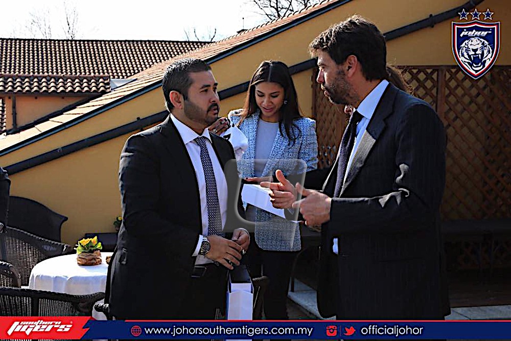 KUALA LUMPUR 9 Mac. – Johor Darul Ta’zim (JDT) terus mengorak langkah untuk mengukuhkan kelab apabila bakal menjalin kerjasama dengan gergasi bola sepak Itali, Juventus. Pemilik JDT, Tunku Ismail Sultan Ibrahim dalam hantaran di Facebook HRH Crown Prince of Johor berkata, Harimau Selatan sedang membincangkan kolaborasi dengan Juventus. Perkara itu dibincangkan ketika Tunku Ismail bertemu Presiden Juventus, Andrea Agnelli di Royal Park I Roveri, Fiano, Itali semalam. “JDT dan Juventus…