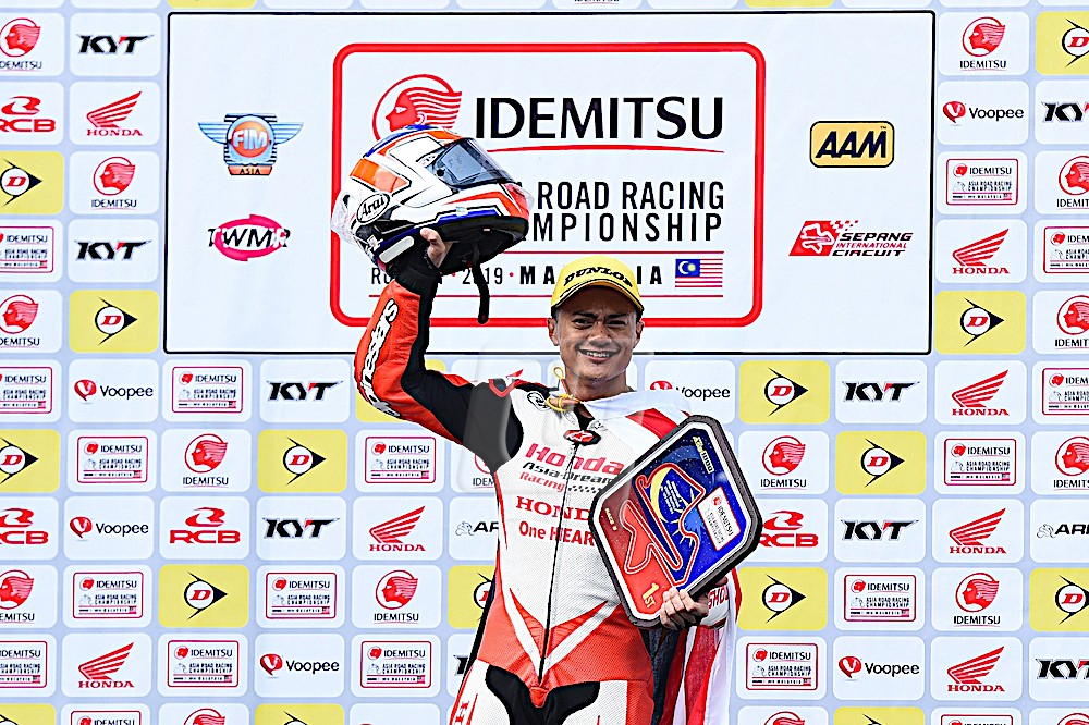 KUALA LUMPUR 10 Mac – Pelumba Honda Asia-Dream Racing With Showa, Zaqhwan Zaidi (gambar) berjaya memenangi Perlumbaan 2 kelas Asian Superbikes 1000cc dalam Kejuaraan Motosikal Asia Idemitsu (ARRC) di Litar Antarabangsa Sepang (SIC), hari ini, meskipun beraksi di atas trek perlumbaan yang basah akibat hujan. Zaqhwan yang masih belum pulih sepenuhnya daripada kecederaan tangan menamatkan perlumbaan tersebut dengan catatan keseluruhan terpantas 27 minit 20.147 saat (s) mengatasi pelumba Kawasaki Thailand…