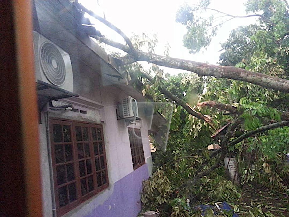 KUALA LUMPUR 29 April- Sebuah rumah mengalami kerosakan pada bahagian bumbung selepas dihempap pokok dalam kejadian di Batu 15, Jalan Kenanga, Bukit Kundang dekat sini petang tadi. Unit Pengurusan Bencana Negeri Selangor dalam kenyataan berkata, kejadian berlaku kira-kira pukul 7 petang ketika hujan dan angin kuat melanda di kawasan berkenaan. “Kejadian itu menyebabkan sebuah rumah mengalami kerosakan berskala kecil. “Bagaimanapun, tiada penempatan dibuka setakat ini dan kita akan terus memantau…