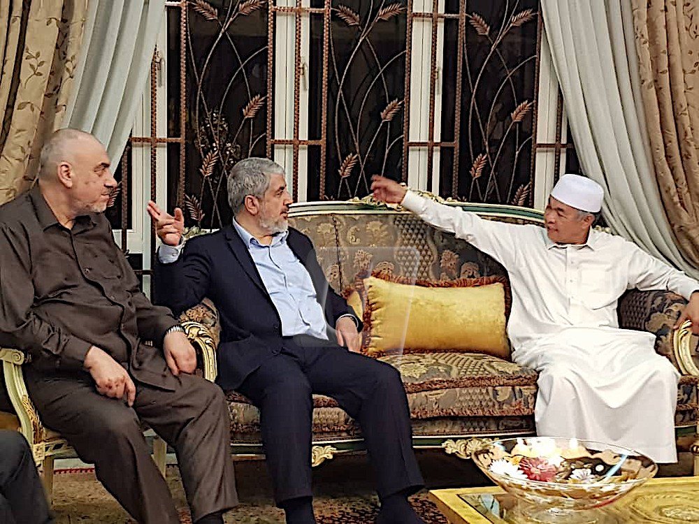 KUALA LUMPUR 23 Mei – Presiden UMNO, Datuk Seri Dr. Ahmad Zahid Hamidi menerima kunjungan hormat bekas Ketua Hamas, Khaled Mashal di kediamannya di Kajang, malam ini. Yang turut bersama dalam pertemuan tersebut Bendahari UMNO, Datuk Seri Tengku Adnan Tengku Mansor. Pertemuan ini merupakan pertemuan ketiga selepas menerima dua kunjungan pada tahun 2013 dan 2015 menerusi persahabatan yang terjalin antara kedua-dua pemimpin terutama dengan sokongan padu Ahmad Zahid terhadap perjuangan…
