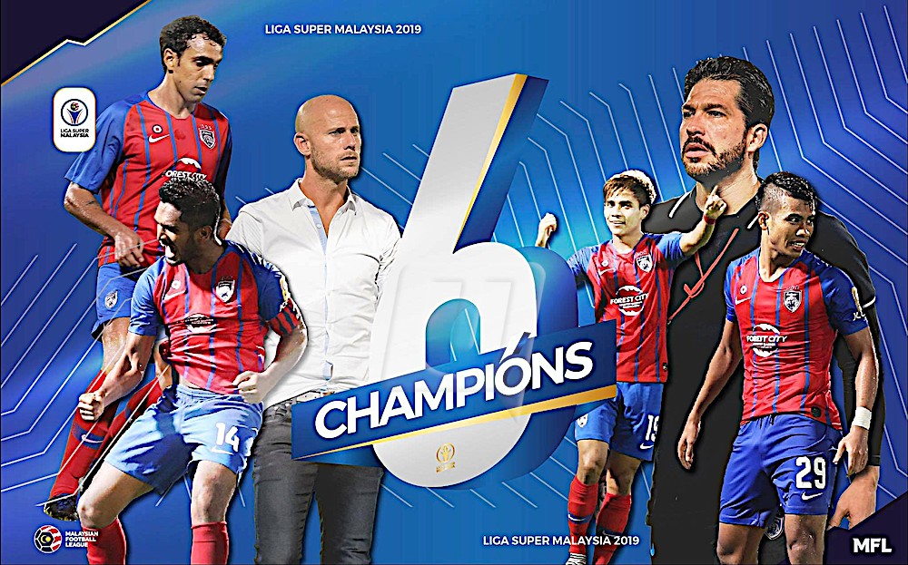 KUALA LUMPUR – Johor Darul Ta’zim (JDT) muncul juara Liga Super 2019 sekali gus melakar sejarah bola sepak tanah air sebagai satu-satunya pasukan memenangi gelaran itu buat kali keenam berturut-turut selepas menundukkan Melaka 2-1, malam ini. Kejayaan anak buah ketua jurulatih, Benjamin Mora di Stadium Hang Jebat itu membolehkan JDT mengumpul 46 mata dan menamatkan perebutan takhta lebih awal dengan baki empat perlawanan liga. Lebih manis, kejayaan bersejarah skuad ‘Harimau…