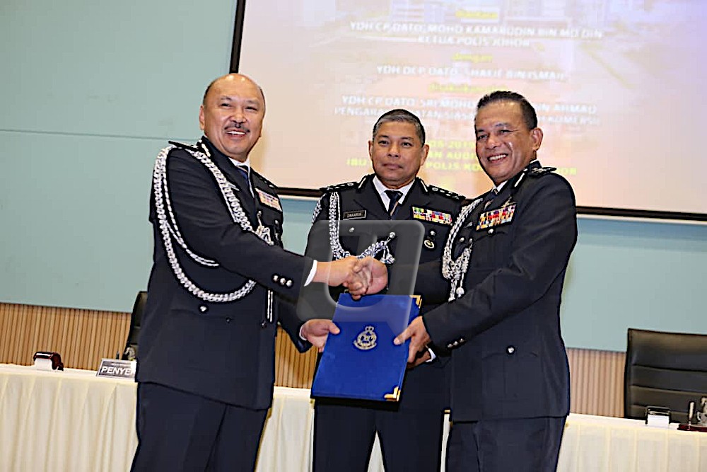 JOHOR BAHRU 20 Ogos – Ketua Pusat Pengajian Sains Pengurusan Maktab Polis Diraja Malaysia (PDRM), Datuk Shafie Ismail dilantik secara rasmi sebagai Timbalan Ketua Polis Johor yang baharu berkuat kuasa hari ini. Shafie, 59, mengambil alih tugas disandang Datuk Mohd. Kamarudin Md Din yang kini dinaikkan pangkat sebagai Ketua Polis Johor bermula bulan lalu. Majlis serah terima tugas itu berlangsung di Auditorium Ibu pejabat Polis Kontinjen (IPK) Johor di sini…