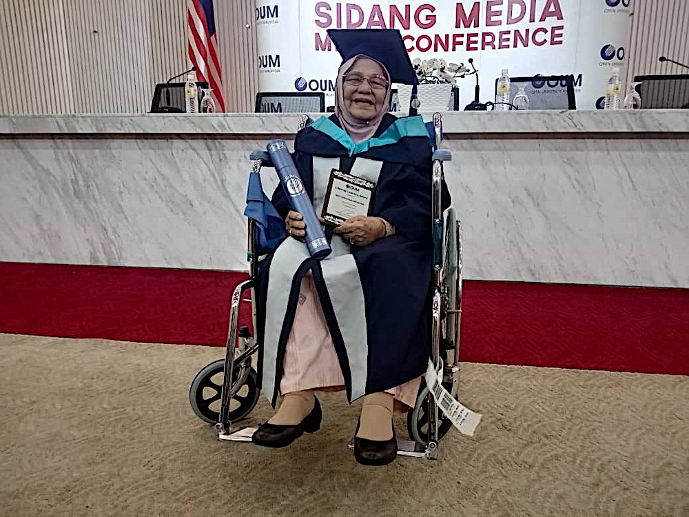 KUALA LUMPUR – Usia lanjut tidak menghalang dua graduan menamatkan pengajian pada umur 88 dan 87 tahun untuk melayakkan mereka mendapat Ijazah Sarjana Muda pada Majlis Konvokesyen Universiti Terbuka Malaysia (OUM) ke-23 kelmarin. Menurut Wan Zainun Wan Abd. Manan atau mesra dipanggil Tok Wan, 88, yang berjaya menggenggam Ijazah Sarjana Muda Pengajian Islam pada majlis konvokesyen itu, minatnya untuk menimba ilmu menjadi pendorong untuk menamatkan pengajian. “Ada juga yang berkata,…