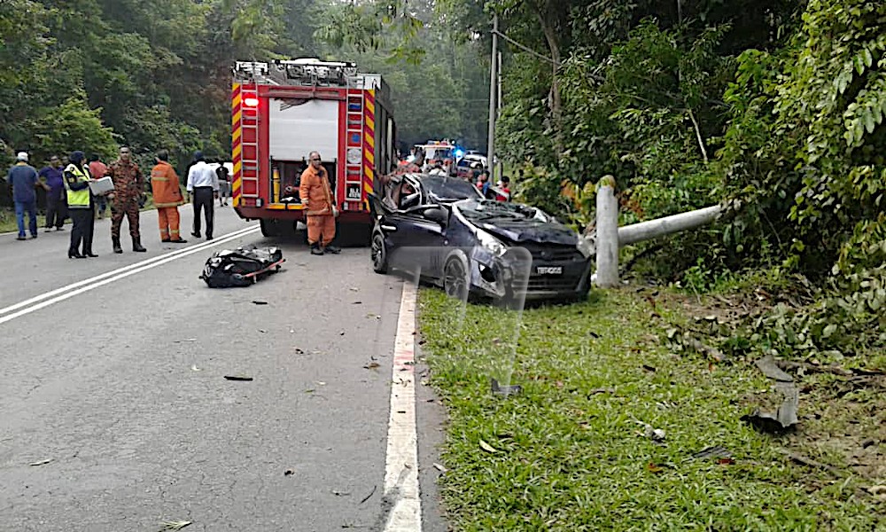 JERANTUT 28 Sept. – Seorang guru wanita maut selepas kereta dinaikinya terbabas dan melanggar tiang elektrik di Kilometer 18 Jalan Jerantut-Benta di sini, semalam. Ketua Polis daerah, Superintenden Mazlan Hassan berkata, kejadian kira-kira pukul 6 petang itu berlaku, Nur Syairah Nadiah Samsudin, 27, dalam perjalanan dari arah Jerantut ke Benta bersama suaminya yang memandu kereta berkenaan. “Ketika mengambil selekoh kereta jenis Perodua Axia yang dinaiki mangsa terbabas ke kanan jalan dan…