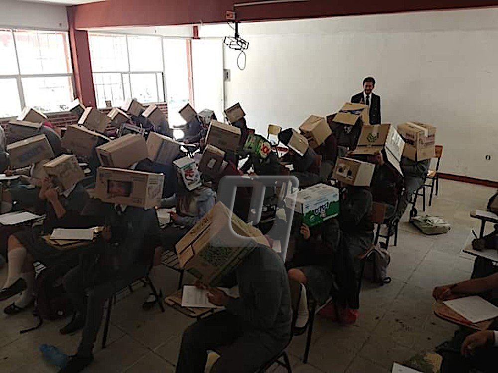 MEXICO CITY 3 Sept. – Gara-gara mengarahkan pelajarnya memakai kotak kadbod semasa peperiksaan, seorang guru di Mexico dikritik hebat ibu bapa yang mendakwa langkah itu memalukan dan melanggar hak asasi manusia anak mereka. Portal Oddity Central melaporkan, Luis Juárez Texis yang juga Pengarah Kampus 01 El Sabinal di Kolej Sarjana Muda, negeri Tlaxcala meminta pelajar memakai kotak kadbod di kepala bagi mengelak mereka meniru semasa peperiksaan. Isu itu timbul selepas…