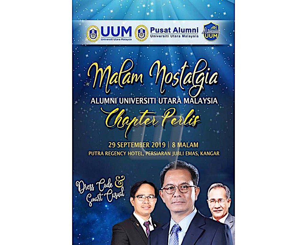 SINTOK 23 Sept. – Malam Nostalgia Alumni Universiti Utara Malaysia (UUM) yang julung-julung kali dianjurkan persatuan alumni universiti itu bakal diadakan di Hotel Putra Regency di Kangar, Perlis pada 29 September ini. Menurut Naib Presiden 1, Persatuan Alumni UUM (PAUUM) Azhar Mamat, program yang diadakan secara percuma ini bertujuan bagi menghimpunkan seberapa ramai alumni di Perlis khususnya dan negeri-negeri di bahagian utara Semenanjung, amnya. “Naib Canselor UUM, Prof Datuk Dr.…