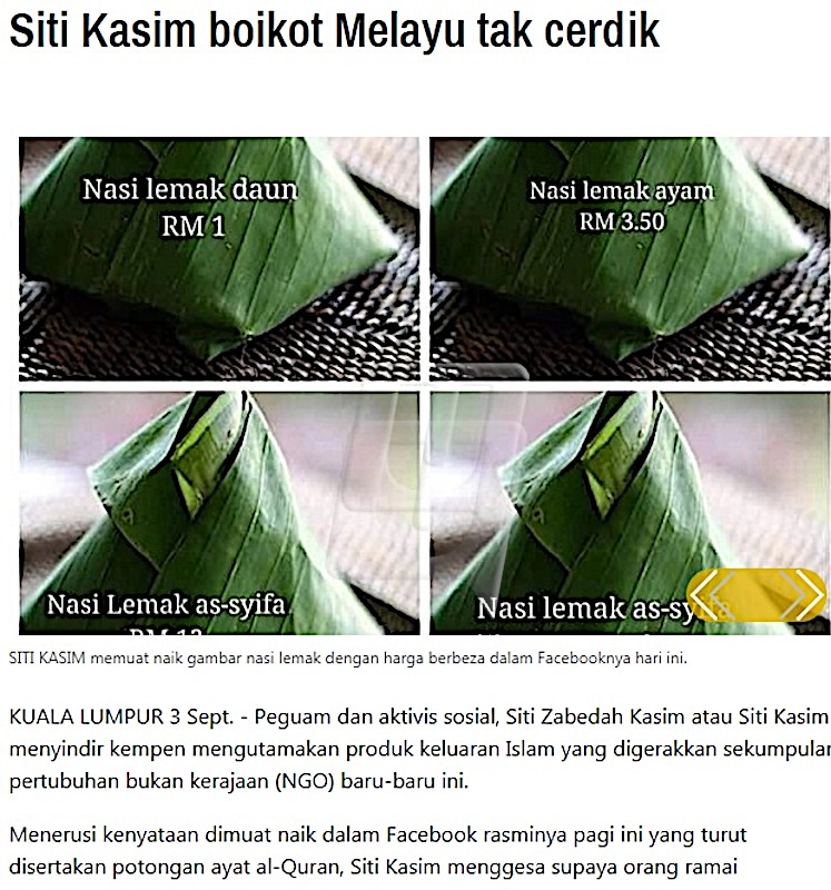 BELI ‘produk keluaran umat Islam’ dan beli ‘produk yang mempergunakan agama’ sebagai bahan pelaris adalah dua perkara yang sangat berbeza. TANGKAP layar Utusan Online mengenai Siti Kasim yang menyindir pihak mengutamakan produk Muslim dalam akaun Facebook miliknya hari ini. – UTUSAN ONLINE Itu rumusan dapat dibuat berdasarkan kenyataan terbaharu dimuat naik peguam kontroversi, Siti Kasim dalam akaun Facebook miliknya hari ini. Apa yang cuba dibandingkan aktivis sosial itu adalah berkenaan…