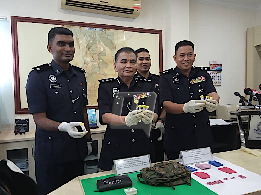 KOTA BHARU 3 Sept. – Tiga lelaki yang sedang leka mengisi heroin ke dalam penyedut minuman ditahan dalam serbuan di sebuah rumah di Kampung Sungai Budor, di sini kira-kira pukul 12.10 tengah malam semalam. Dalam serbuan tersebut pihak polis turut merampas dadah disyaki heroin seberat 55.73 gram bernilai RM14,500 daripada suspek. Ketua Polis Daerah Asisten Komisioner Abdul Rahim Daud berkata, ketika serbuan dibuat kesemua mangsa yang berusia 31 sehingga 40…