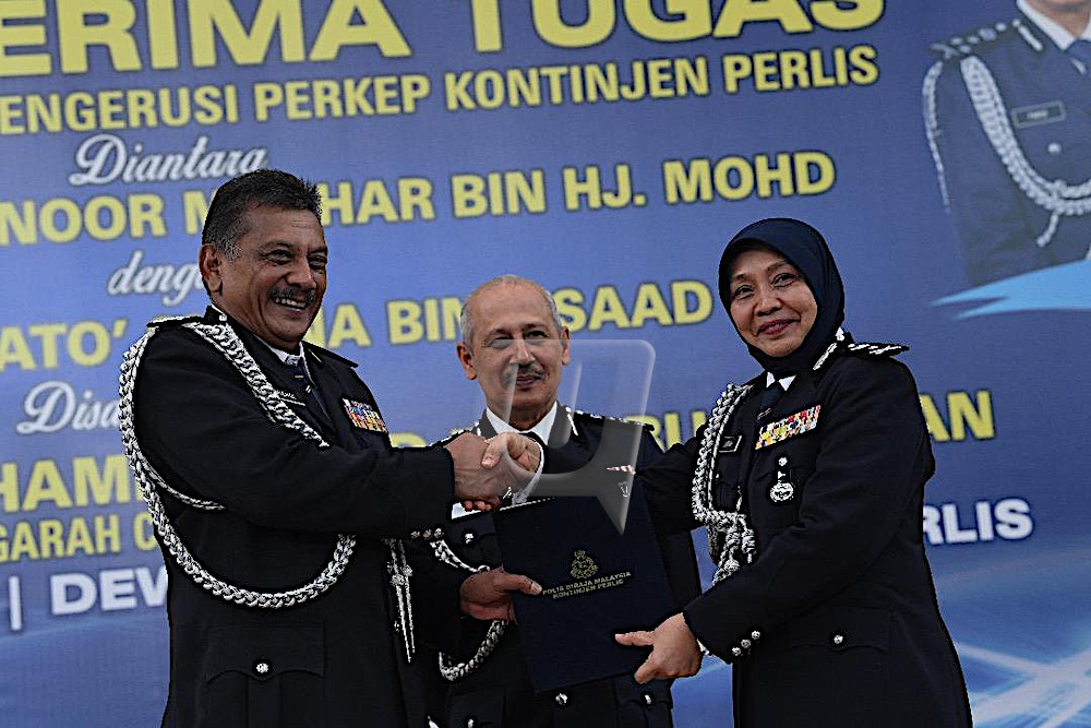KANGAR 3 Sept. – Bekas Ketua Penolong Pengarah E5, Cawangan Khas Bukit Aman, Datuk Surina Saad dilantik sebagai Ketua Polis Perlis baharu berkuat kuasa hari ini. Pelantikan tersebut juga mencipta sejarah apabila beliau menjadi wanita pertama yang diberi kepercayaan menggalas tanggungjawab mengetuai kontijen polis Perlis. Surina, 56, yang juga merupakan anak jati negeri ini menggantikan Datuk Noor Mushar Mohd. yang bersara wajib berkuat-kuasa esok. Majlis serah terima tugas yang berlangsung…