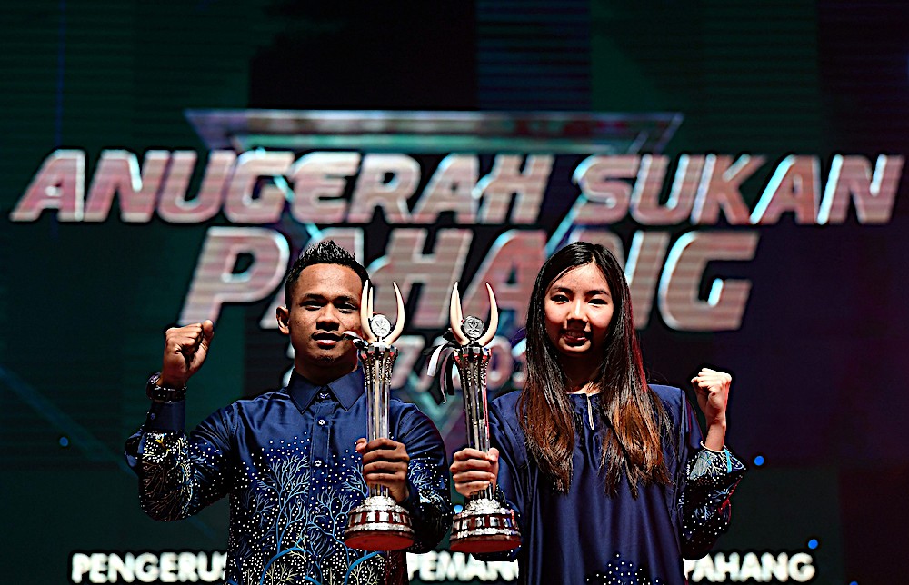 KUANTAN 3 Okt. – Atlet angkat berat, Mohd. Azroy Hazalwafie Izhar Ahmad dan ratu gimrama negara, Koi Sie Yan dinobatkan Olahragawan dan Olahragawati Pahang 2017/2018 dalam Majlis Anugerah Sukan Pahang di sini, malam tadi. Mereka masing-masing membawa pulang wang tunai RM5,000, piala pusingan, piala iringan serta sijil yang disampaikan Pengerusi Jumaah Pemangku Raja Pahang, Tengku Abdul Rahman Sultan Ahmad Shah pada majlis di Dewan Jubli Perak Sultan Haji Ahmad Shah…