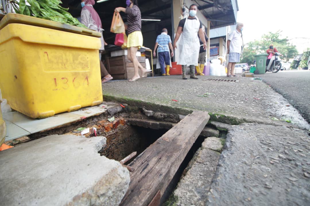 Seorang peniaga ikan, Marizi Suhaimi, 60, berkata, sudah ada individu jatuh ke longkang kerana ketiadaan penutup longkang.