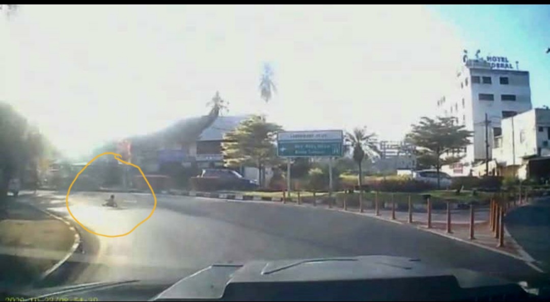 “Mujur Allah SWT lindungi budak itu dan mujur juga laki (suami) tak laju. Kalau tidak, tidak tahu apa yang akan terjadi jika kena langgar.