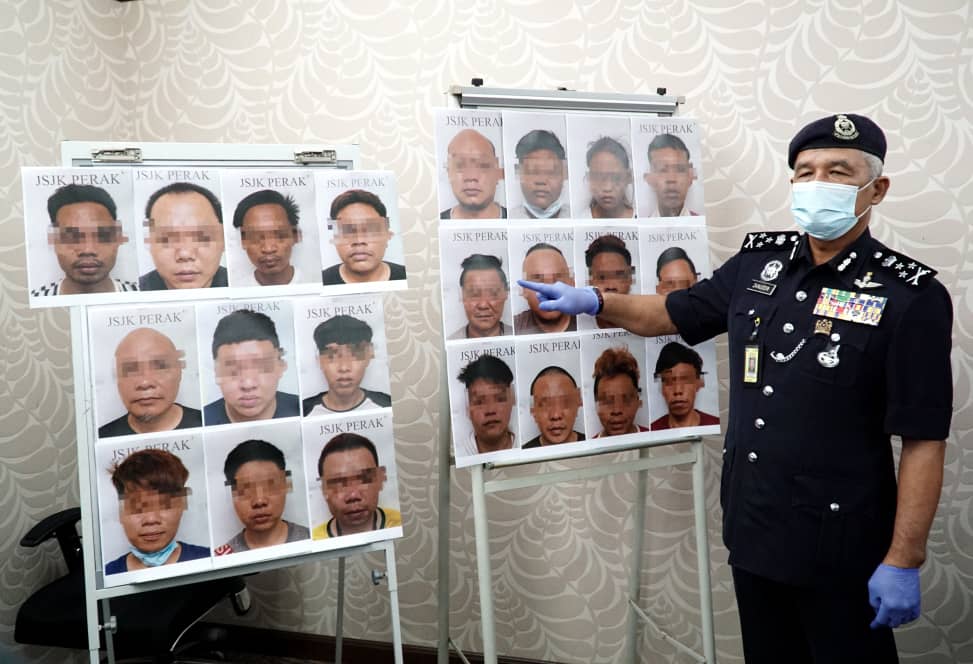 Suspek berusia lingkungan 20 tahun hingga 46 tahun itu ditahan dalam serbuan antara pukul 7 pagi hingga 4 petang oleh sepasukan pegawai dan anggota dari Bahagian Risikan/Operasi, Jabatan Siasatan Jenayah Komersil Bukit Aman.