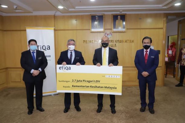 “Picagari terbabit adalah sumbangan daripada Etiqa Family Takaful Berhad yang bernilai RM891,000.00 di mana tahun lalu, Etiqa Family Takaful Berhad telah membuat sumbangan sebanyak RM10 juta kepada Tabung Sumbangan Perubatan Covid-19 dan pada tahun 2021.