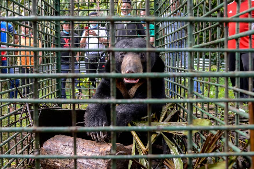 Beruang matahari jantan seberat kira-kira 70 kilogram itu memasuki perangkap yang dipasang Jabatan Perlindungan Hidupan Liar dan Taman Negara (Perhilitan), kira-kira pukul 4 pagi.