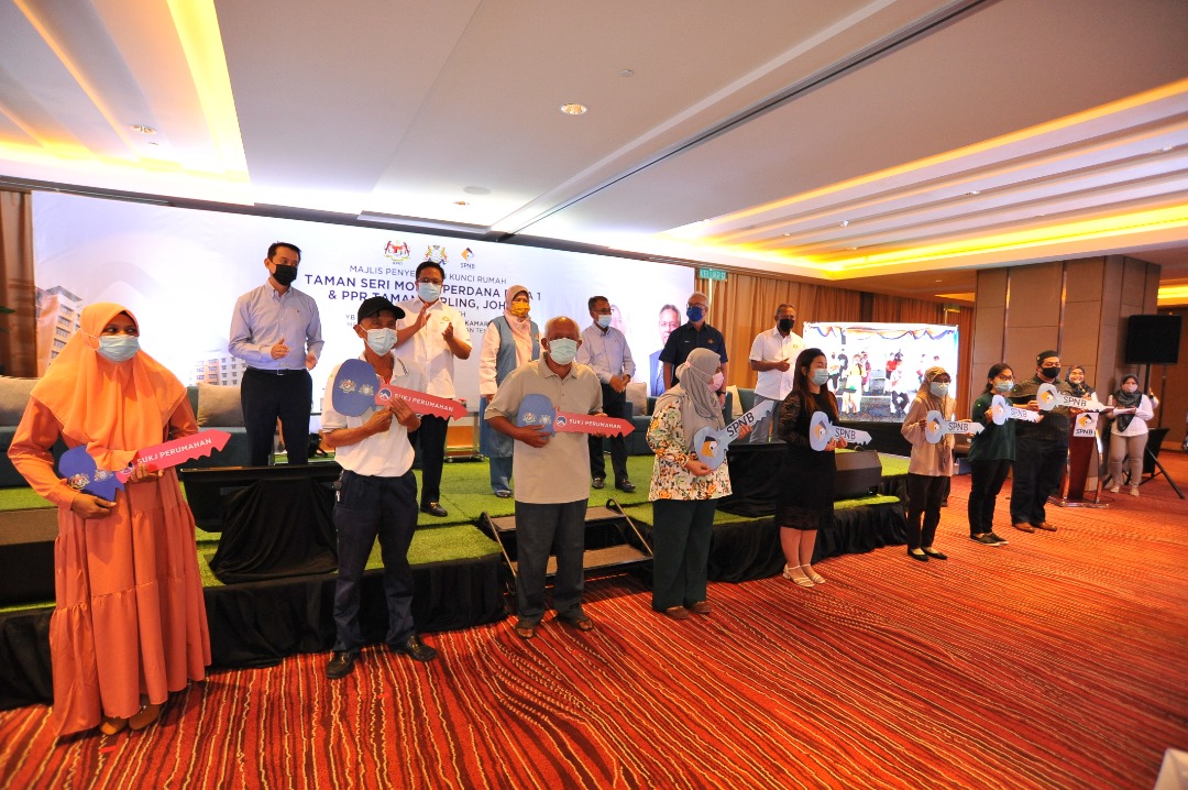 Terdahulu, beliau menyempurnakan Majlis Penyerahan Kunci Rumah Taman Seri Molek Perdana Fasa 1 dan PPR Taman Perling, di Hotel DoubleTree by Hilton, di sini hari ini.