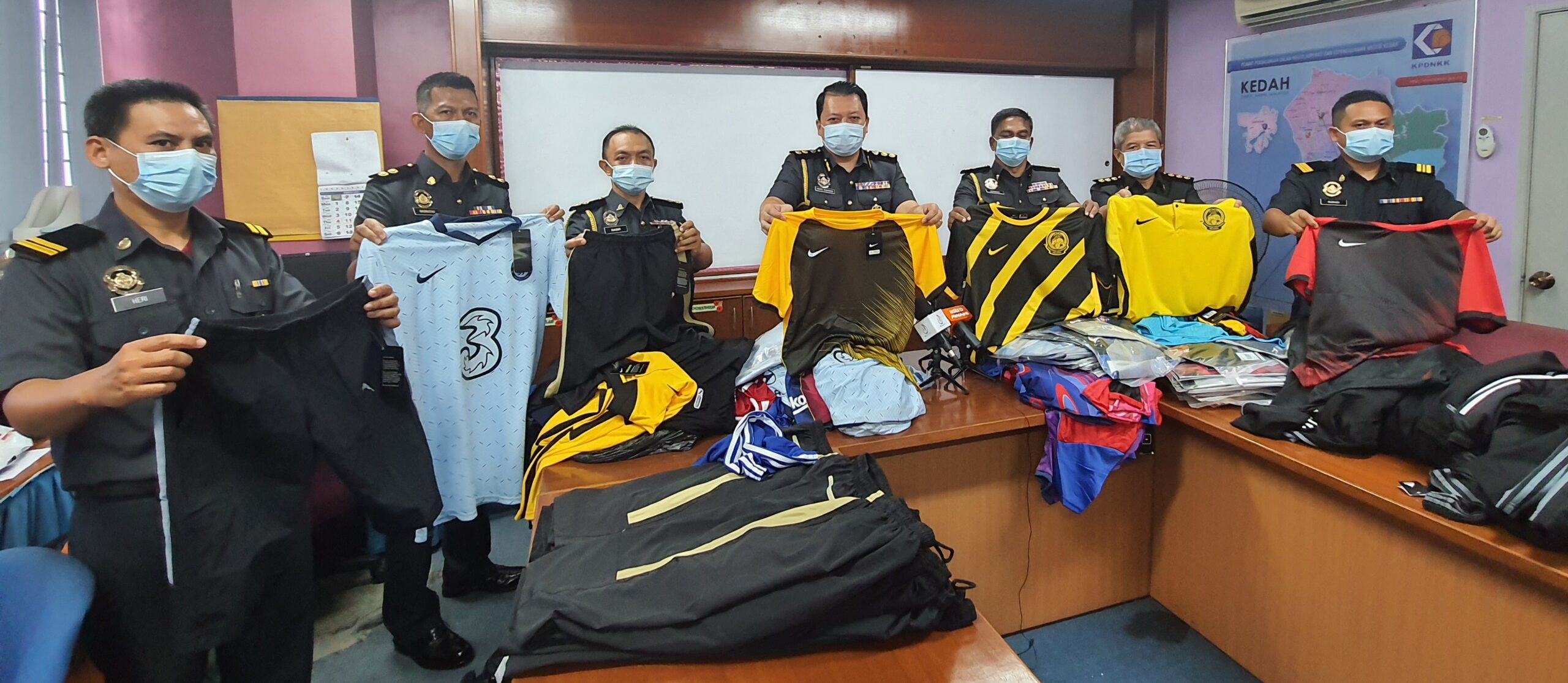 Antara pakaian sukan yang dirampas itu termasuk jersi skuad Harimau Malaya dan kelab bola sepak luar negara.