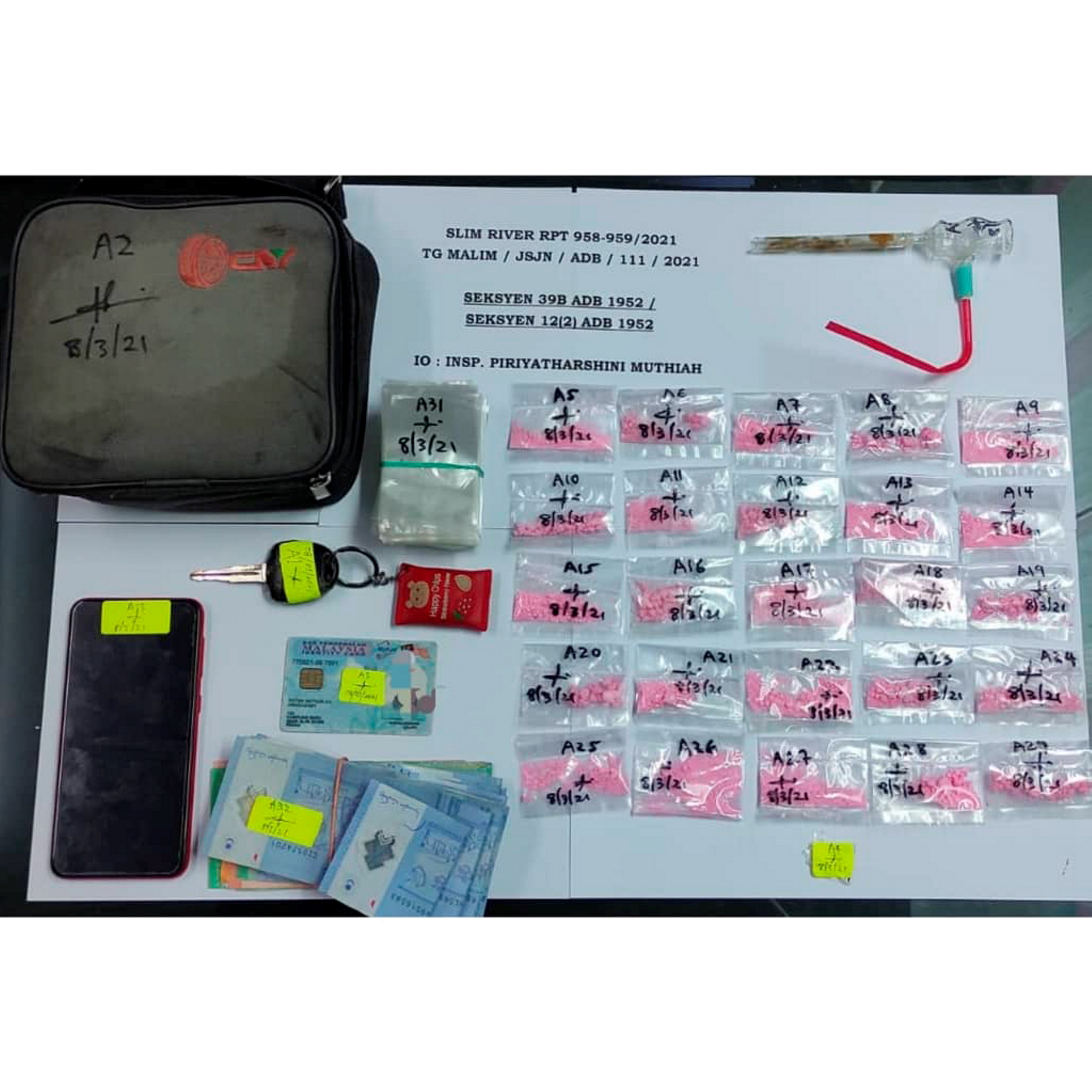 Menurut beliau, polis juga menemukan wang kertas berjumlah RM362 dan mata wang asing sebanyak 19 dollar Singapura serta seunit telefon bimbit dengan nilai keseluruhan rampasan berjumlah RM2,500.