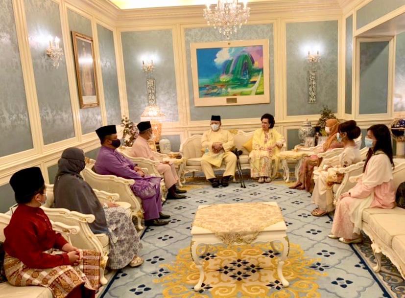 ARAU: Raja Perlis, Tuanku Syed Sirajuddin Jamalullail dan Raja Perempuan Perlis, Tuanku Tengku Fauziah Tengku Abdul Rashid berkenan berangkat menerima kunjungan sembah menghadap Perdana Menteri, Tan Sri Muhyiddin Yassin dan isteri, Puan Sri Noorainee Abdul Rahman di Balai Menghadap Biru, Istana Arau, di sini hari ini.
